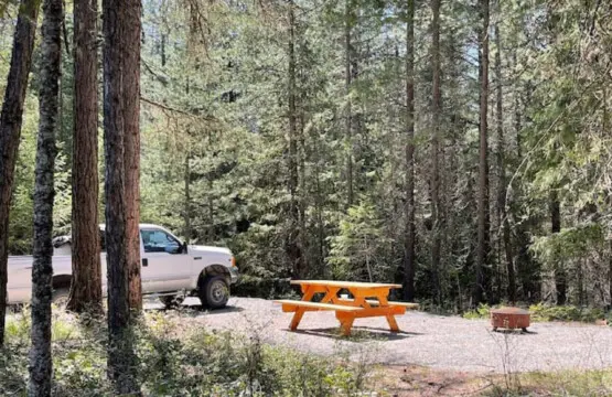 This site is just off to the left of the road at the end of the property. You will find a level pad that fits 2 small tents or a small camper. Our amenities include a firepit, extremely clean outdoor facilities and potable water. Here you can escape into the woods and soak up what nature has to provide. 15 minutes from the boat launch at Garfield Bay, 10 minutes from downtown Sandpoint and 15 to Silverwood Theme Park.